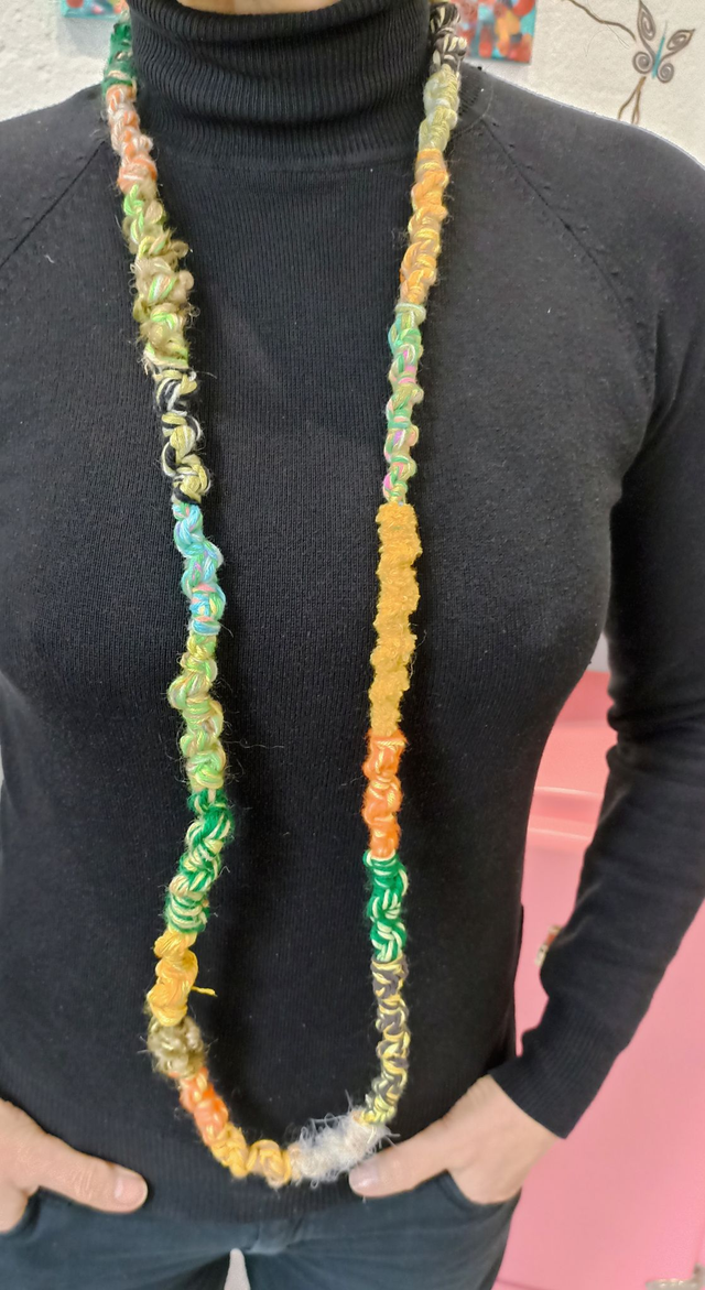 Collar elaborado con hilos y lanas.