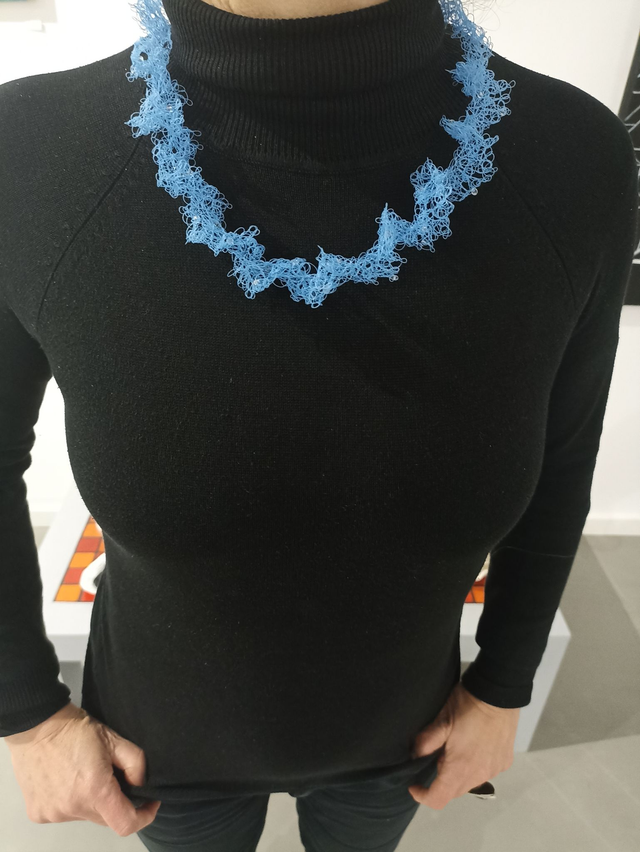 Gargantilla realizada en sedal azul y abalorios.